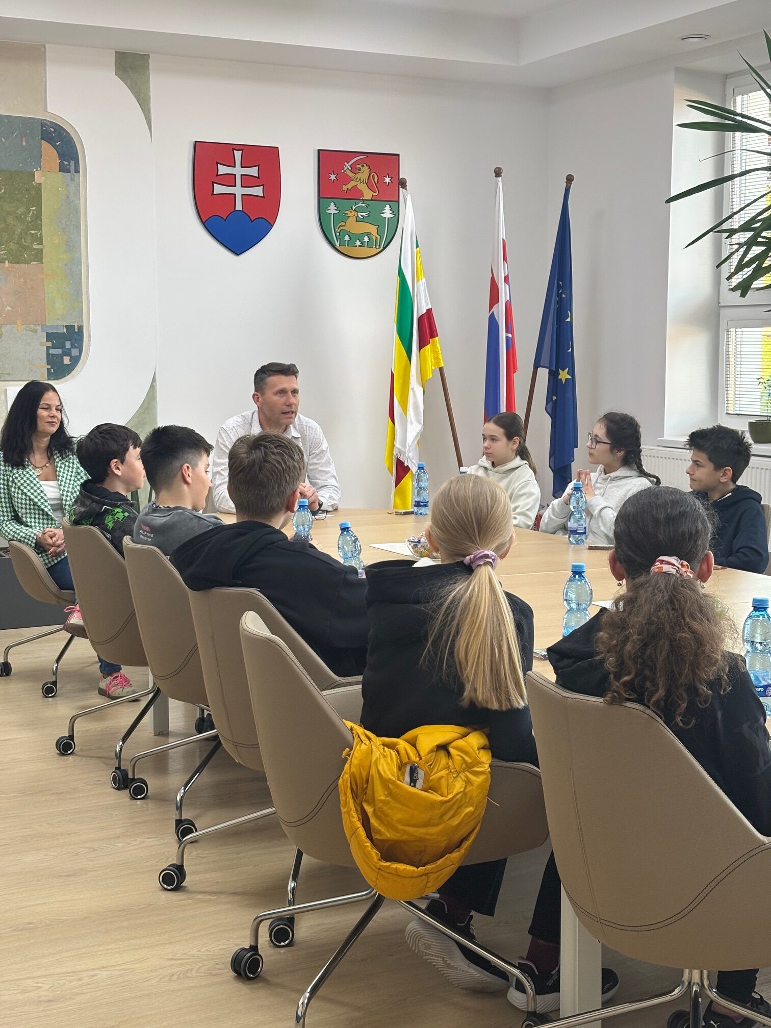 17. apríla 2026 sme u nás na obecnom úrade privítali významnú návštevu z Oddelenia podpory ochrany detí pred násilím, pani Mgr. Máriu Matuškovú z ústredia práce, sociálnych vecí a rodiny, spolu so žiakmi zo Základnej školy v Jelke a ich milým pedagogickým dozorom. Cieľom ich návštevy bolo predstavenie celoslovenskej kampane Bezpečné miesto 2025/2026, do ktorej sme sa aktívne zapojili.