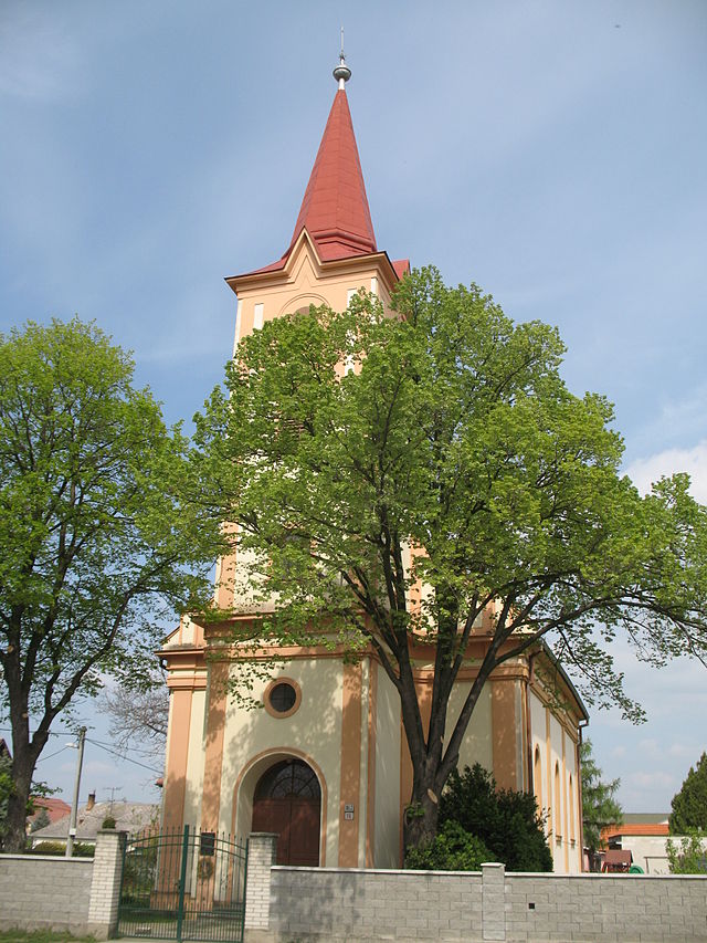 Tretím a najmladším cirkevným zborom v obci je evanjelický zbor. Založený bol až po druhej svetovej vojne v súvislosti s výmenou obyvateľstva r. 1948. Svoj kostol si evanjelici postavili v rokoch 1969- 1971 ( predtým používali kalvínsky kostol ). Evanjelický kostol bol postavený v rokoch 1969-1971. Kostol je menšia biela budova v tvare kocky. Kostol má vyššiu vežu s dvoma predelenými oknami, na streche je umiestnený kríž. Obkolesený je hustou zeleňou. Príjazdová cesta ku vchodu kostola je lemovaná živým plotom.